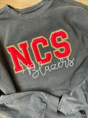 Custom Embroidered Applique Glitter University Varsity Sweatshirt