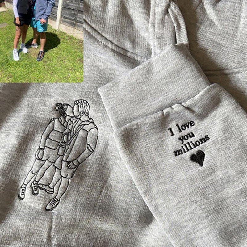 Custom Embroidered Couple Portrait Sweatshirt with Roman Numeral Date for Valentine's Day | Couple Anniversary Gift
