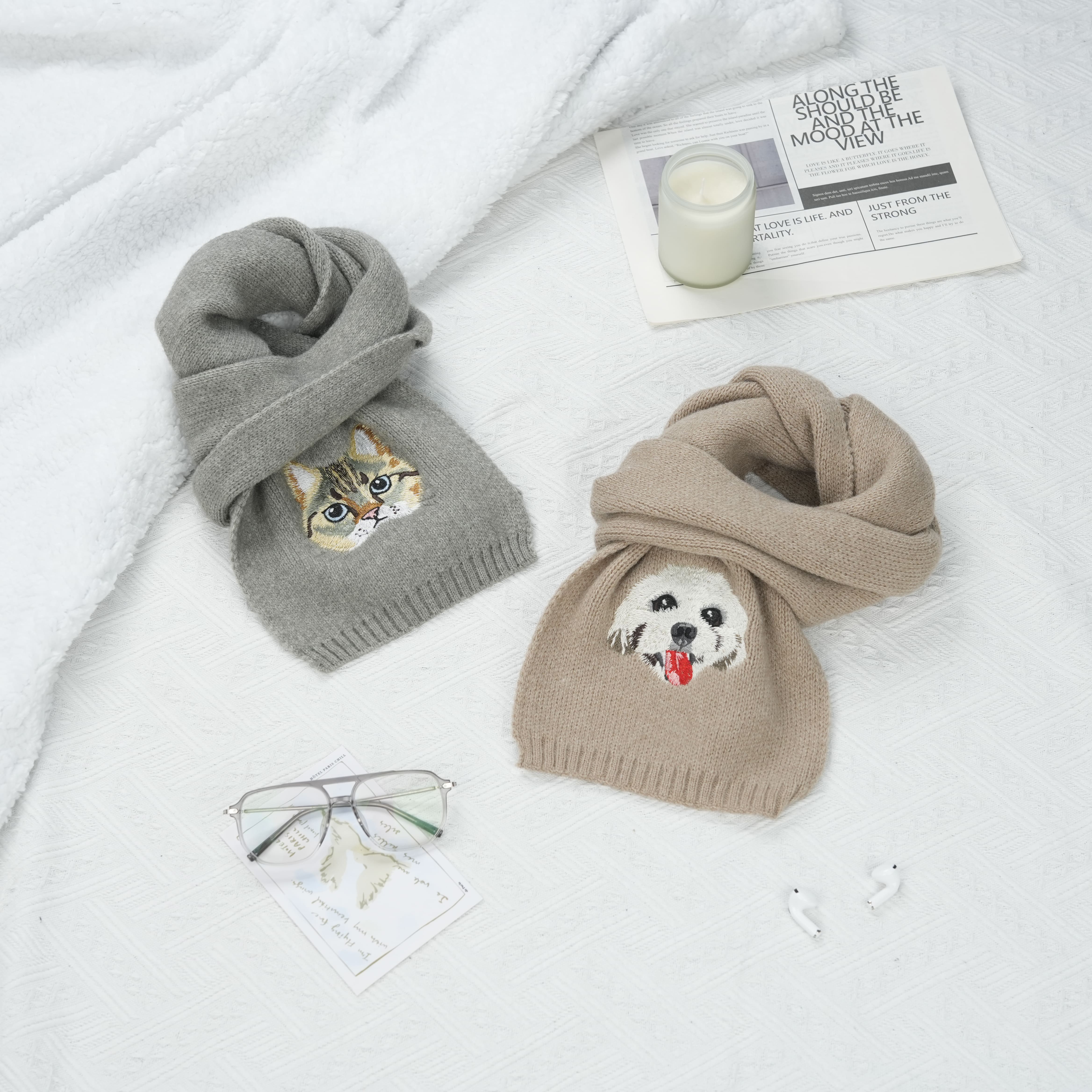 Wrap yourself in warmth and cherish your furry friend with our luxurious, custom embroidered pet portrait scarf. Made from premium, soft woven fabric, each scarf is personalized with a beautifully detailed embroidery of your pet's portrait, making it a heartfelt keepsake or thoughtful gift . Perfect for chilly days or as a stylish accessory, this scarf adds a touch of personality and love to any outfit. Available in a variety of colors and sizes for the perfect match .