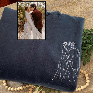 Home Custom Embroidered Photo Portrait Sweatshirt Personalized Matching Couple Hoodie Anniversary Gifts Valentine's Day Gifts for Couple