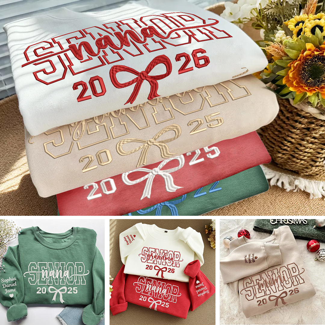 Custom Embroidered Sweatshirt Senior Mama, Nana, Grandma, Bestie, Auntie 2026 | Mother's Day Christmas Gifts for Mom