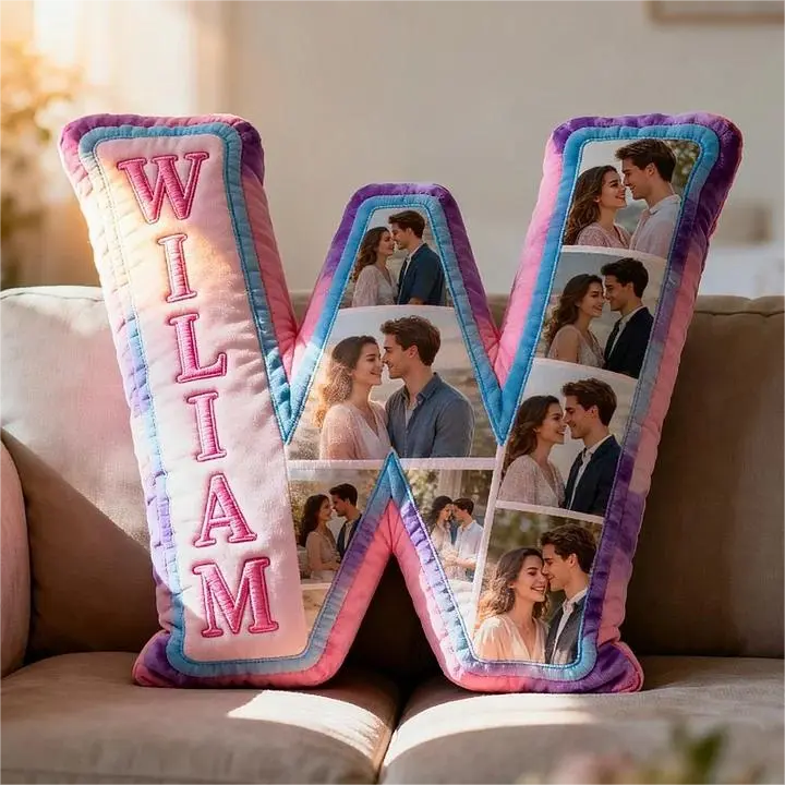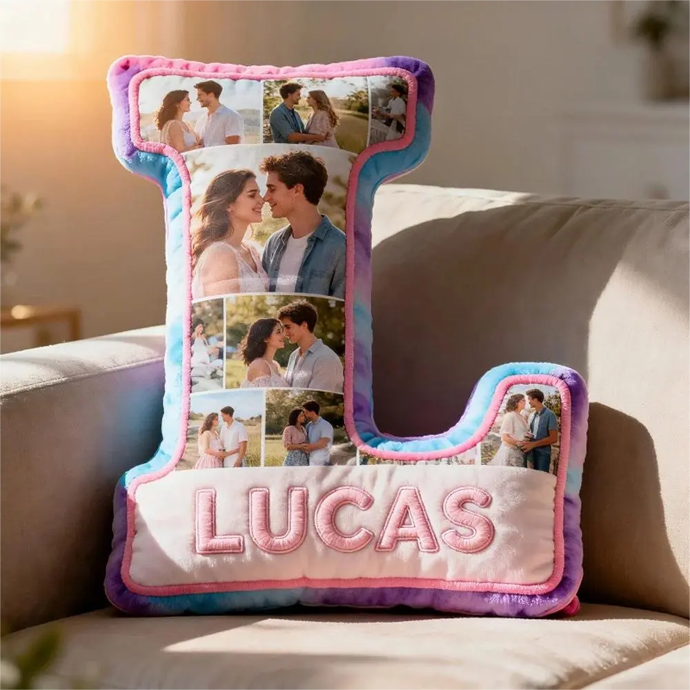 🎁This Personalized Letter Photo Pillow allows you to upload your cherished photos and choose any alphabet letter to create a truly one-of-a-kind keepsake. Each pillow is custom-printed with your photos and your chosen name, making it a meaningful and stylish décor piece for your sofa, bed, or reading nook.