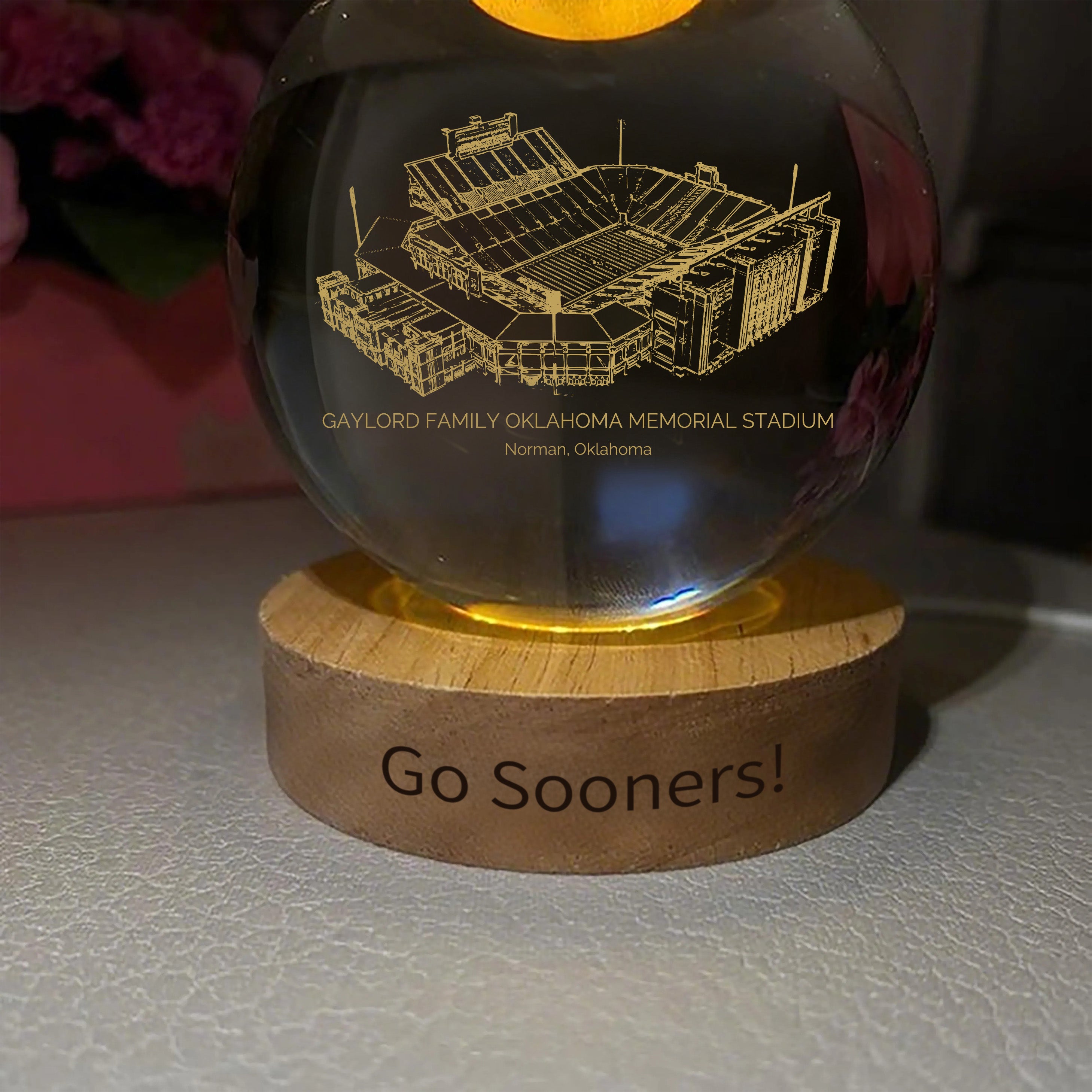 Gaylord Family Oklahoma Memorial Stadium 3D Spherical Crystal Ball Lamp | Game Day, Christmas for Sports Fans