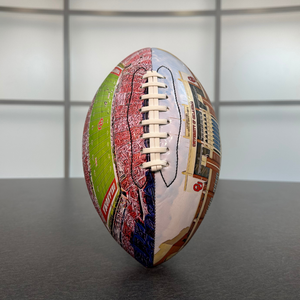 One-of-a-kind! Each football is created through a unique process that combines royalty free photography, digital sketching, and watercolor digital painting.