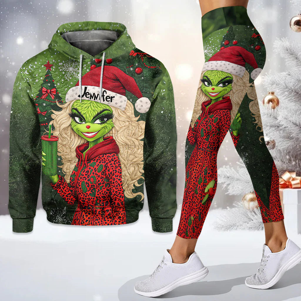 Green Monster Festive Grch Lady - Personalized Hoodie And Leggings - Gift For Movie Fans
