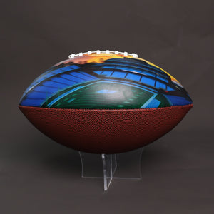 One-of-a-kind! Each football is created through a unique process that combines royalty free photography, digital sketching, and watercolor digital painting.