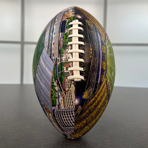 One-of-a-kind! Each football is created through a unique process that combines royalty free photography, digital sketching, and watercolor digital painting.