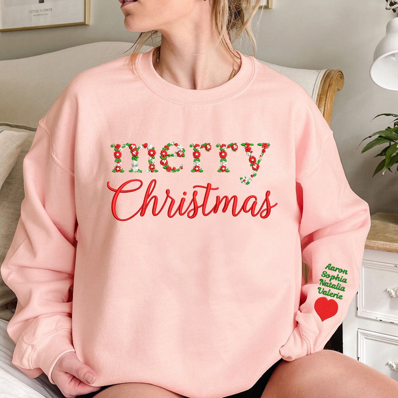 Home Merry Christmas Floral Embroidered Sweatshirt