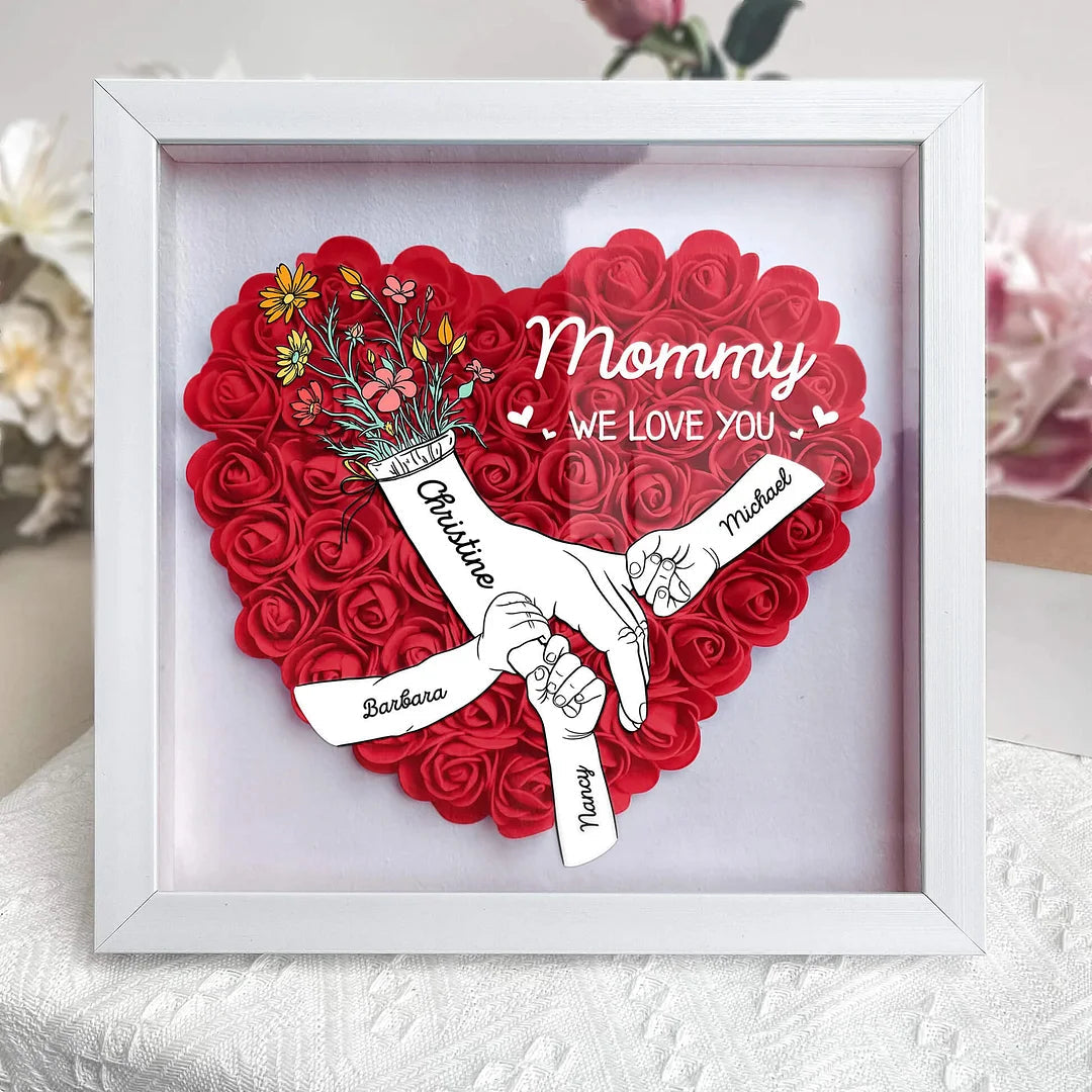 Home Mom Hands Holding We Love You - Personalized Flower Shadow Box With Led Light