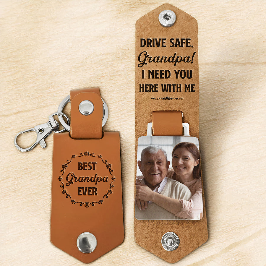 🤎What sets this keychain apart is the option for personalization. Choose a favorite photo of you and your grandpa, and our team will carefully engrave it onto the genuine leather surface. This custom touch makes the keychain truly one-of-a-kind, capturing a special moment shared between you and your grandpa.