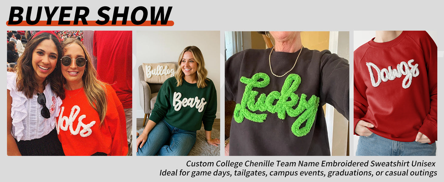 Home Custom College Chenille Team Name Embroidered Sweatshirt