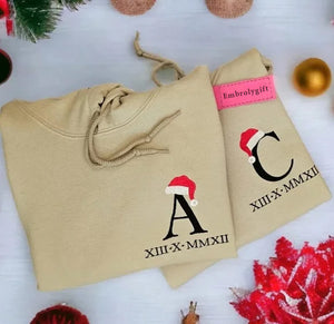 Personalised Roman Numerals and Eachothers Initials Christmas Hoodie Christmas Day Couple Gifts