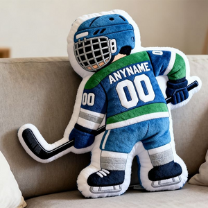 Personalized Adorable Ice Hockey Player Pillow for Kids with Custom Jersey Name and Number