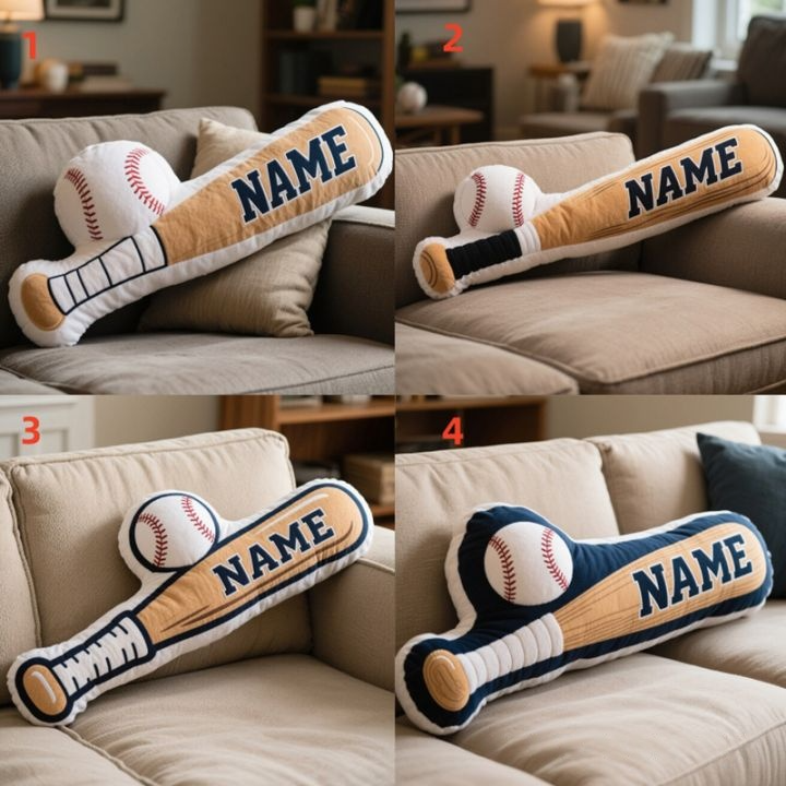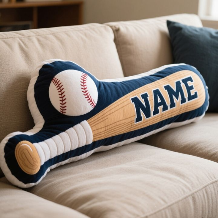 Personalized Baseball Bat and Ball Pillow with Custom Name for Baseball Lovers