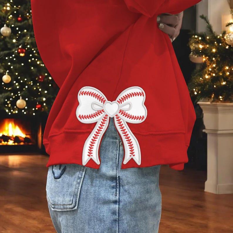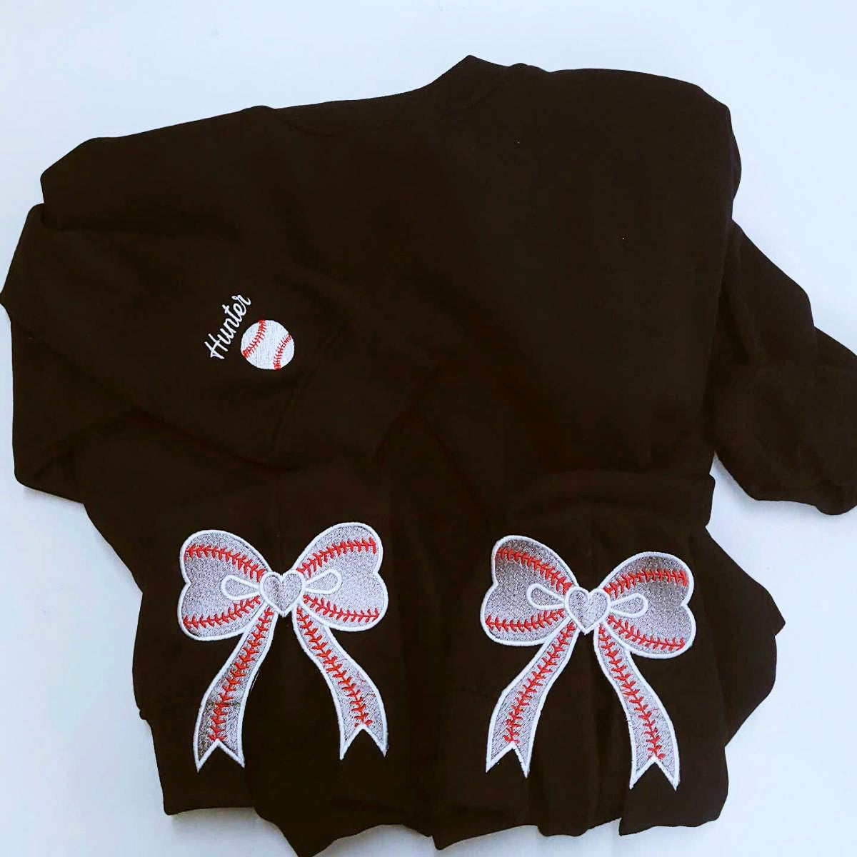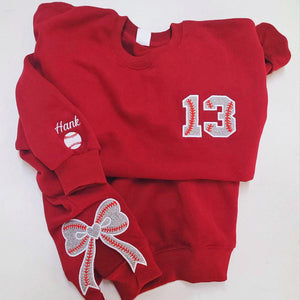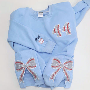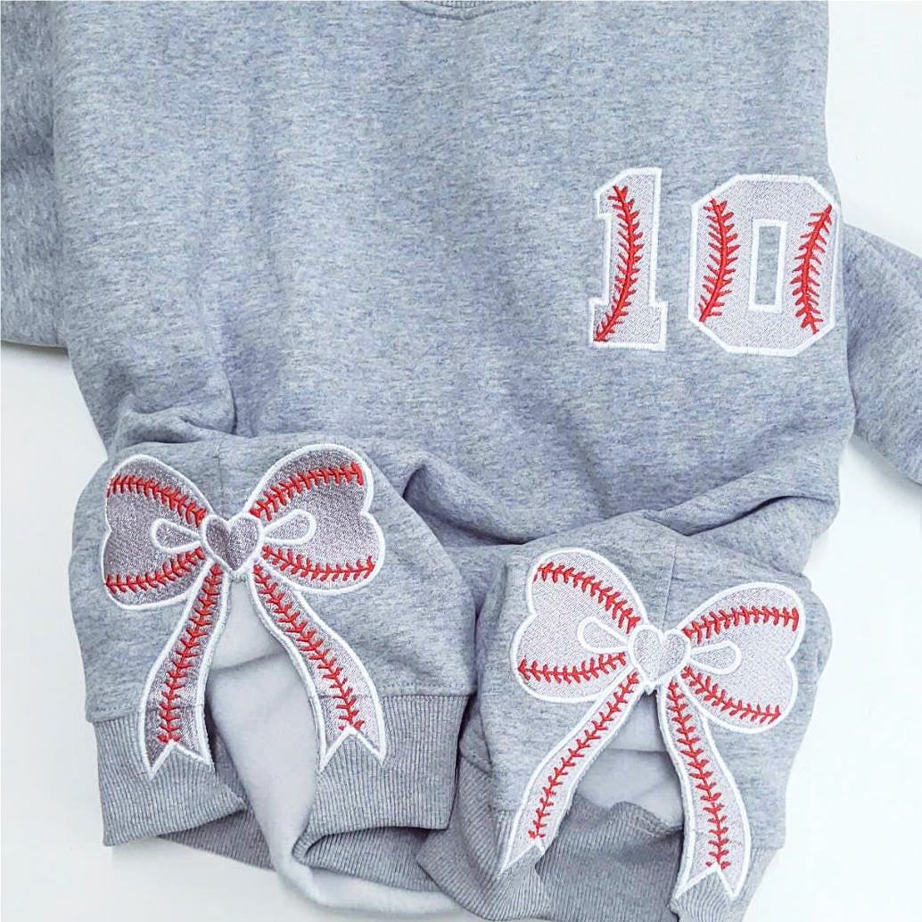 Personalized Baseball Side Bow Applique Side Bow Embroidered Sweatshirt