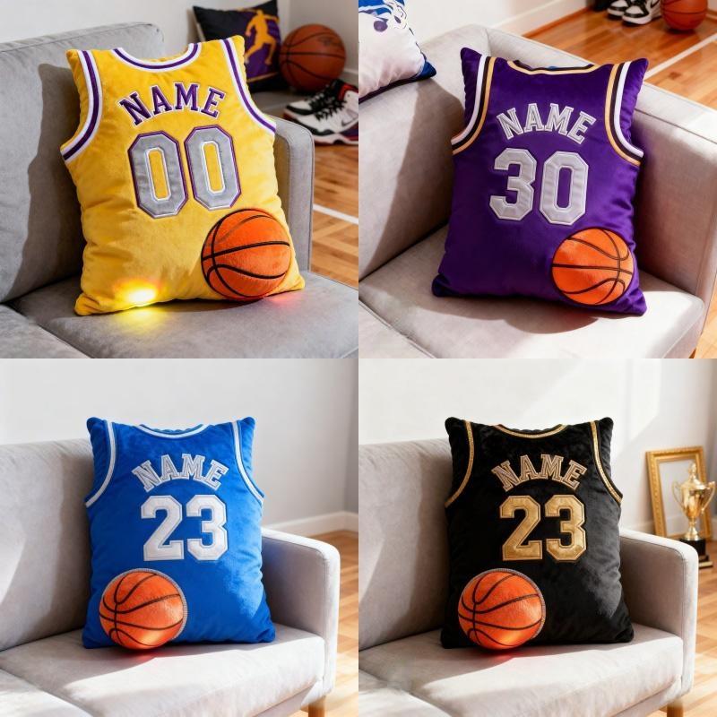 Home Personalized Graphic 3DPrint Basketball Jersey Pillow with Custom Name and Number for Fans
