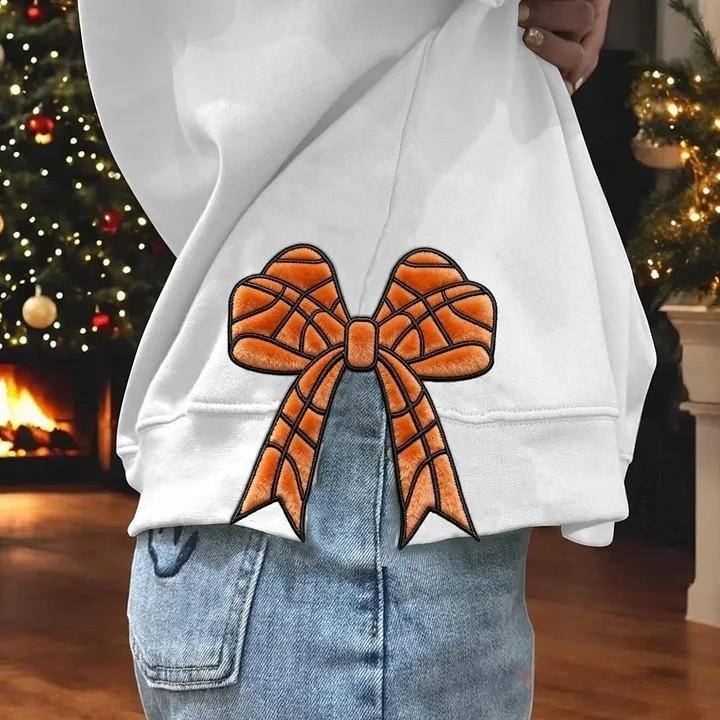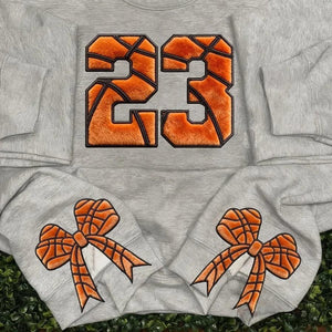 Personalized Basketball-Themed Embroidered Side Bow Sweatshirt with Custom Number/Letter