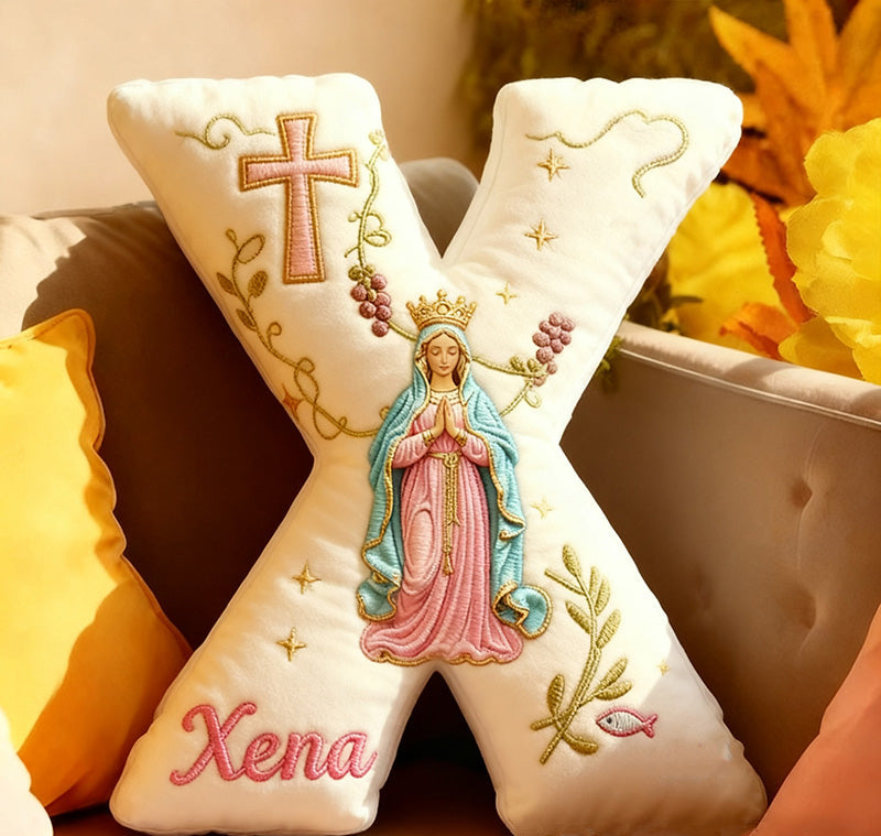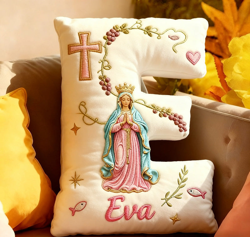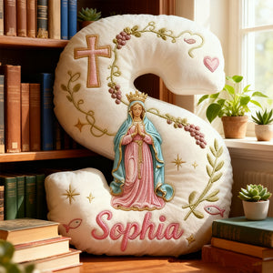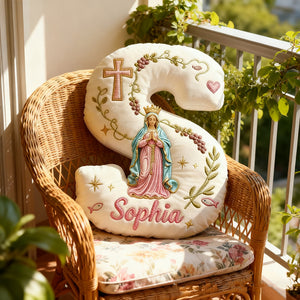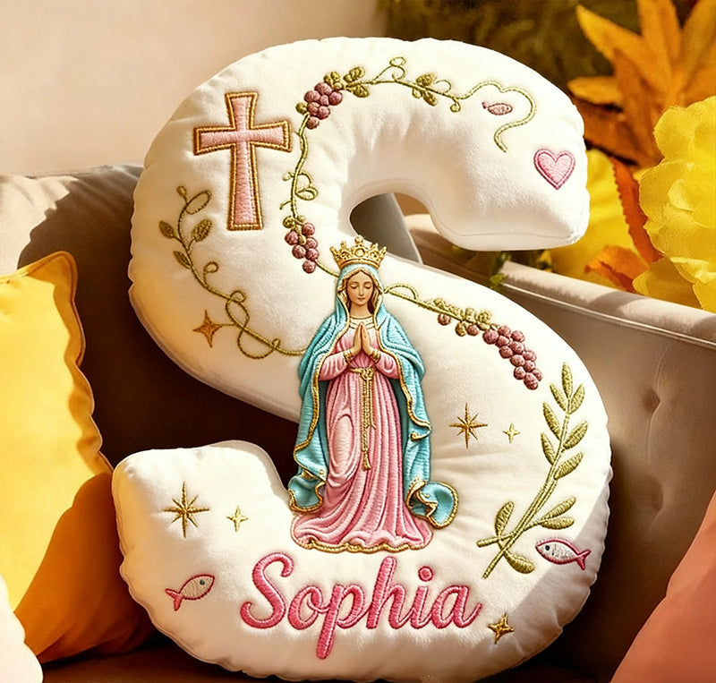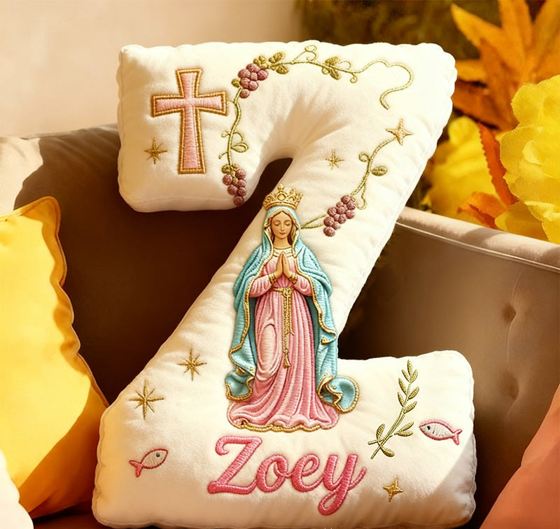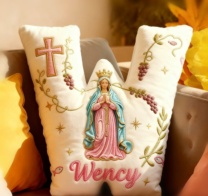 Personalized Cross Virgin Mary Letter Pillow with Custom Name Home Decor Graphic 3D Print Pillow Religious Faith Gift Catholic Gift