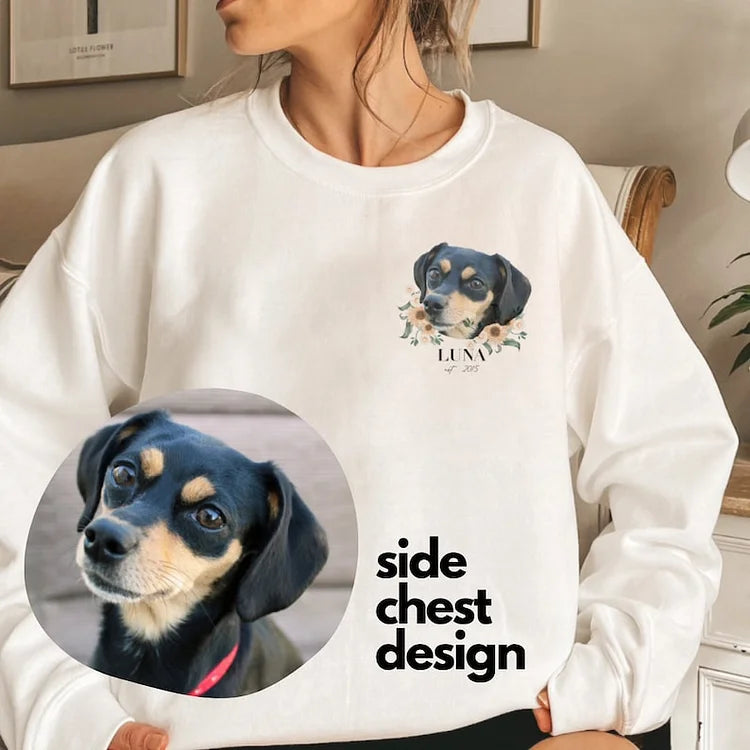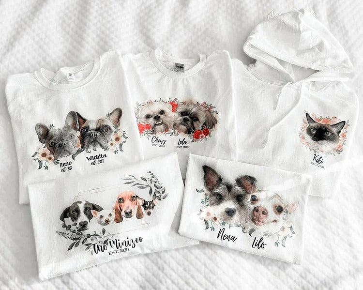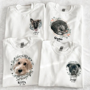 Personalized Custom Pet Dog Face Portrait Floral Wreath T-shirt Sweatshirt Hoodie For Pet Lovers