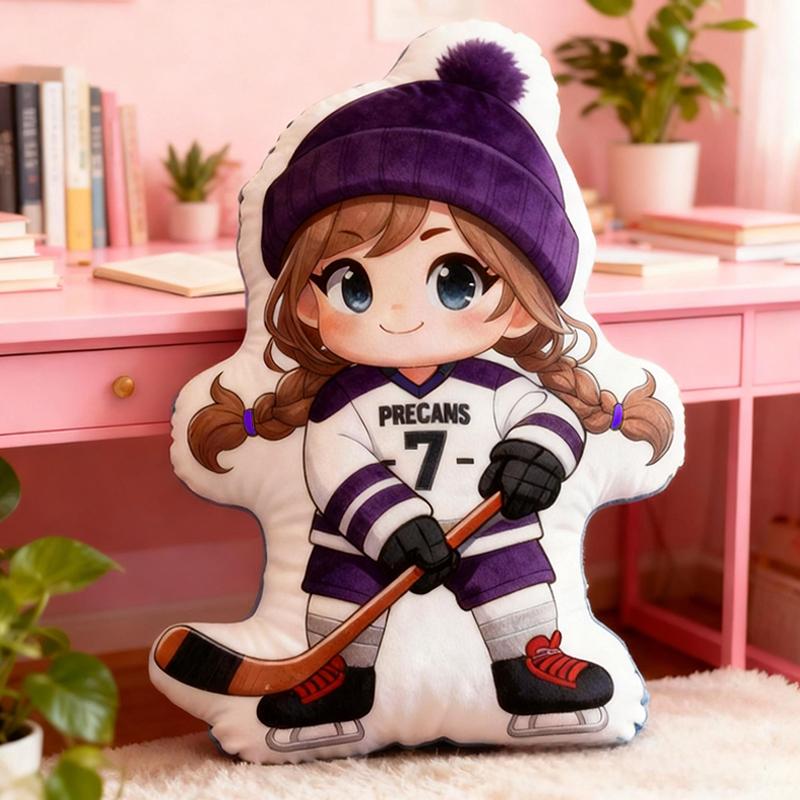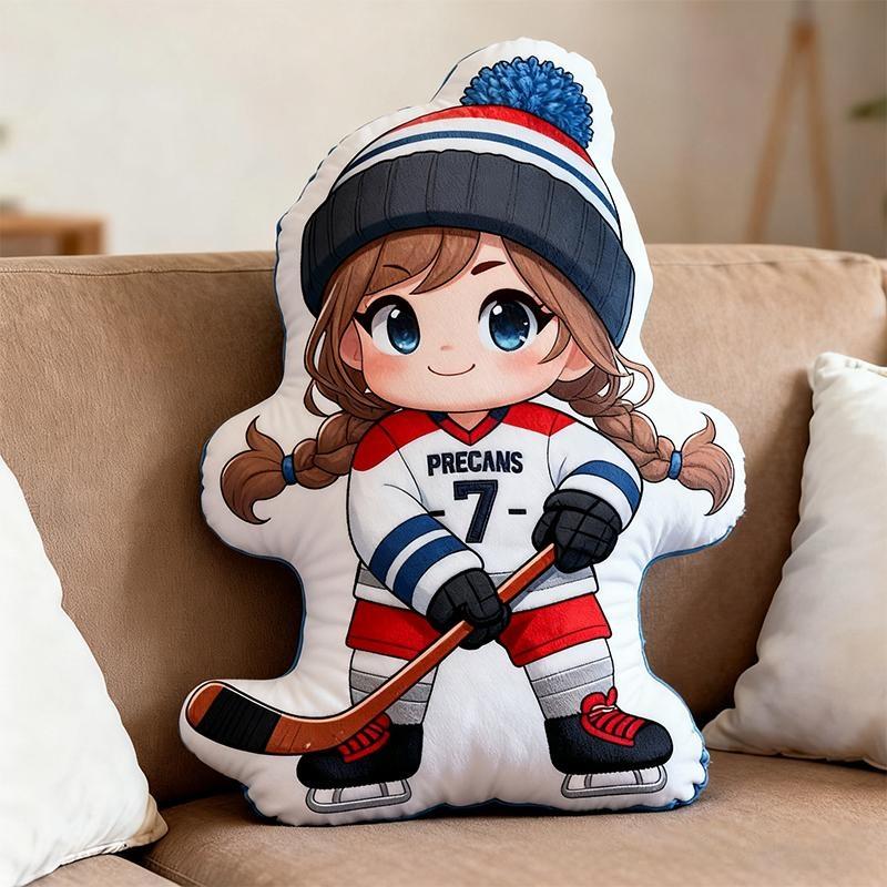Personalized Cute Ice Hockey Pillow with Custom Details for Kids Girls