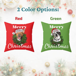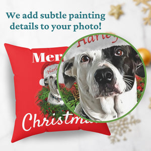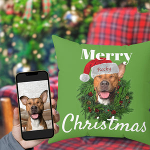 Custom Personalized Dog Portrait Christmas Pillow, Pet Lover Gift