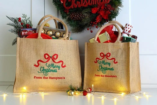 Our stunning Eco-friendly Jute gift bags are bags for life, so no waste going into the environment. Fill them to the brim with the recipient's favourite 🍫Chocolates, 🚗Toys, 💄Perfume, 🍾️Champagne and more for sophisticated gift giving this year.