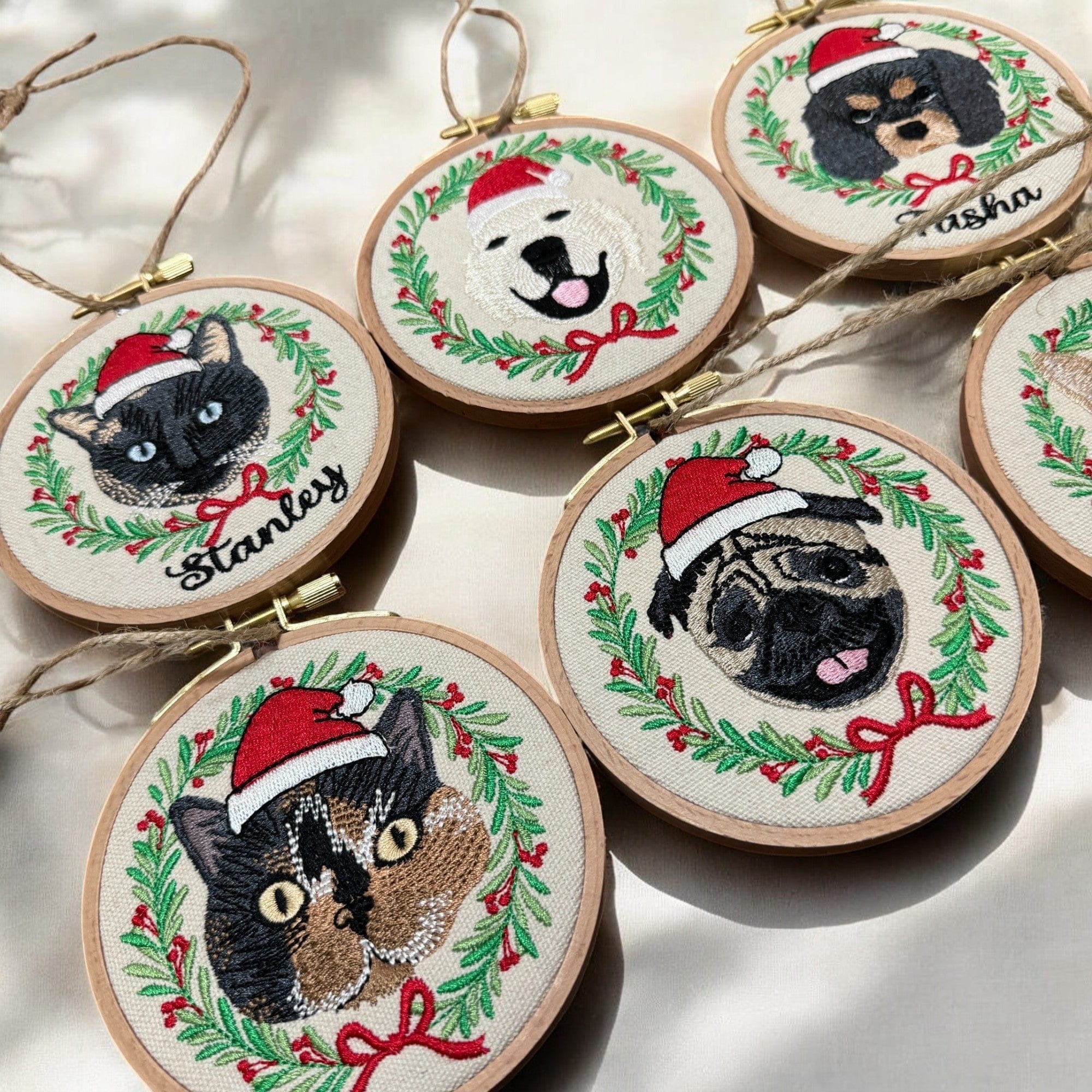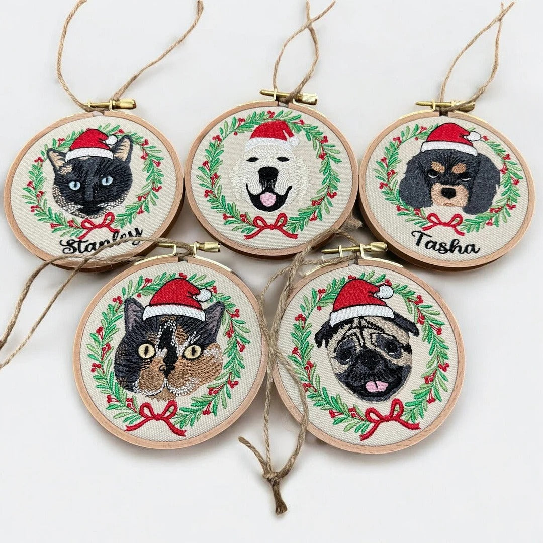 • Each ornament is carefully embroidered using top-quality materials, ensuring that the image of your pet is beautifully captured and long-lasting. The embroidery is done with precision, making each ornament a unique and heartfelt tribute to your beloved pet.
