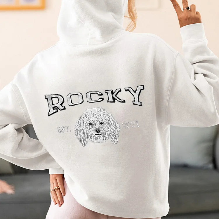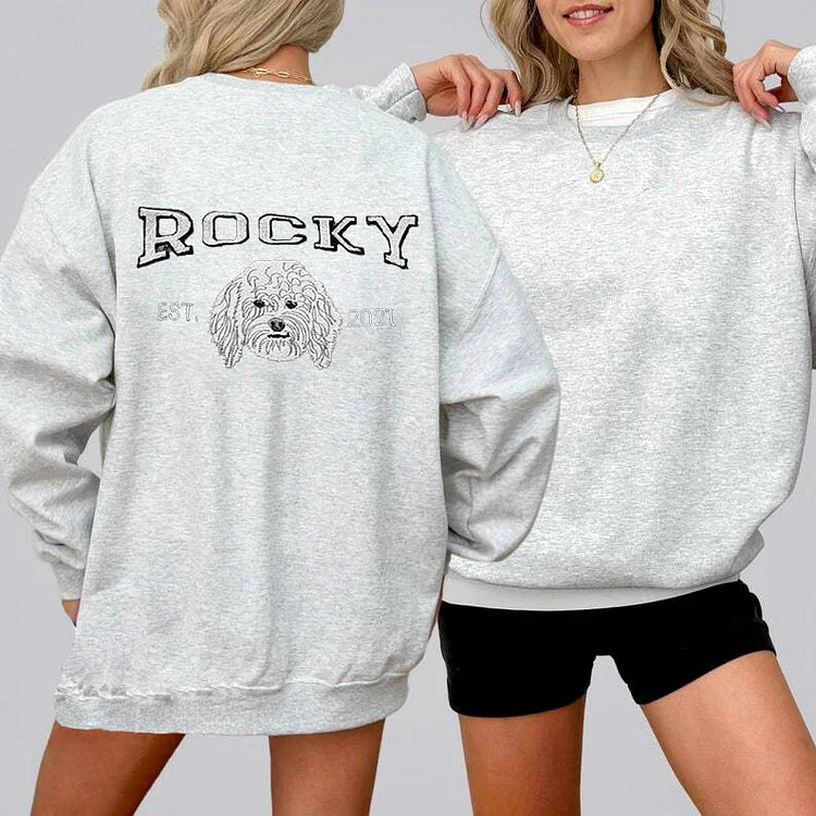 Personalized Embroidered Sweatshirt with Pets Name on Back of Sweatshirt