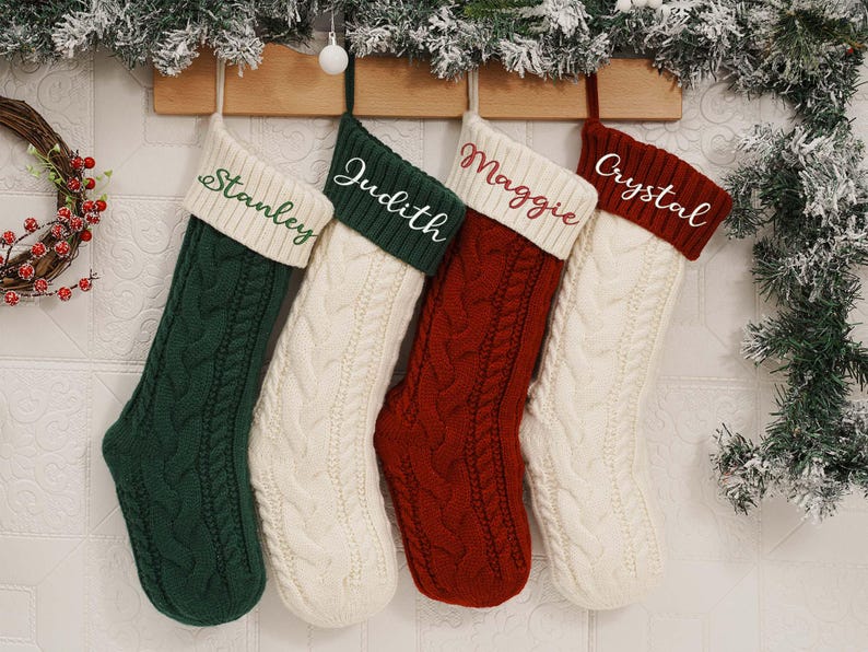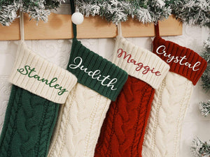 Custom Name Knit Christmas Stocking Size】: Large size with 18’’long, 6" width.These personalized Christmas stockings are large enough to hold many small toys, candies, and baubles for your kids. Just imagine the screaming, happiness, and excitement when your lovely boys and girls find the Christmas stockings on Christmas morning.