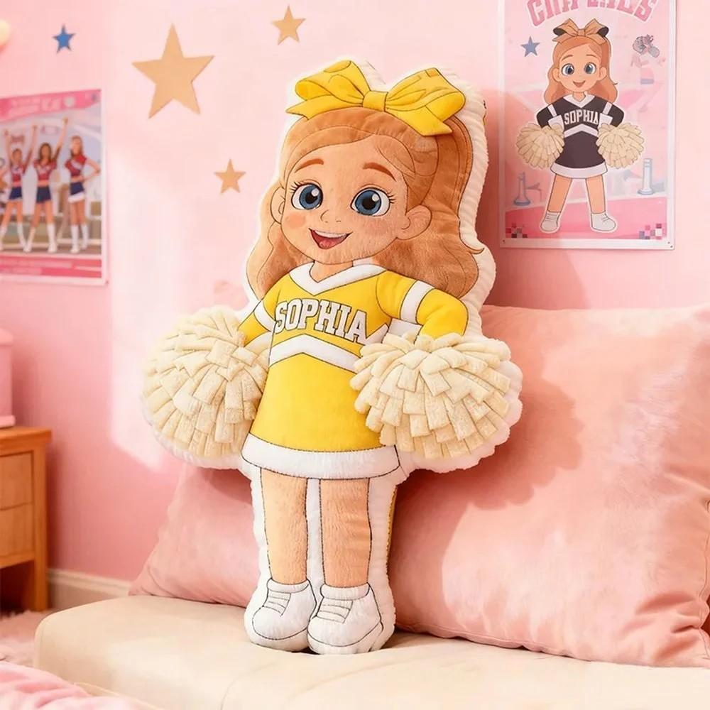 Personalized Graphic 3D Print Cheerleader Pillow with Custom Name and Outfit Design