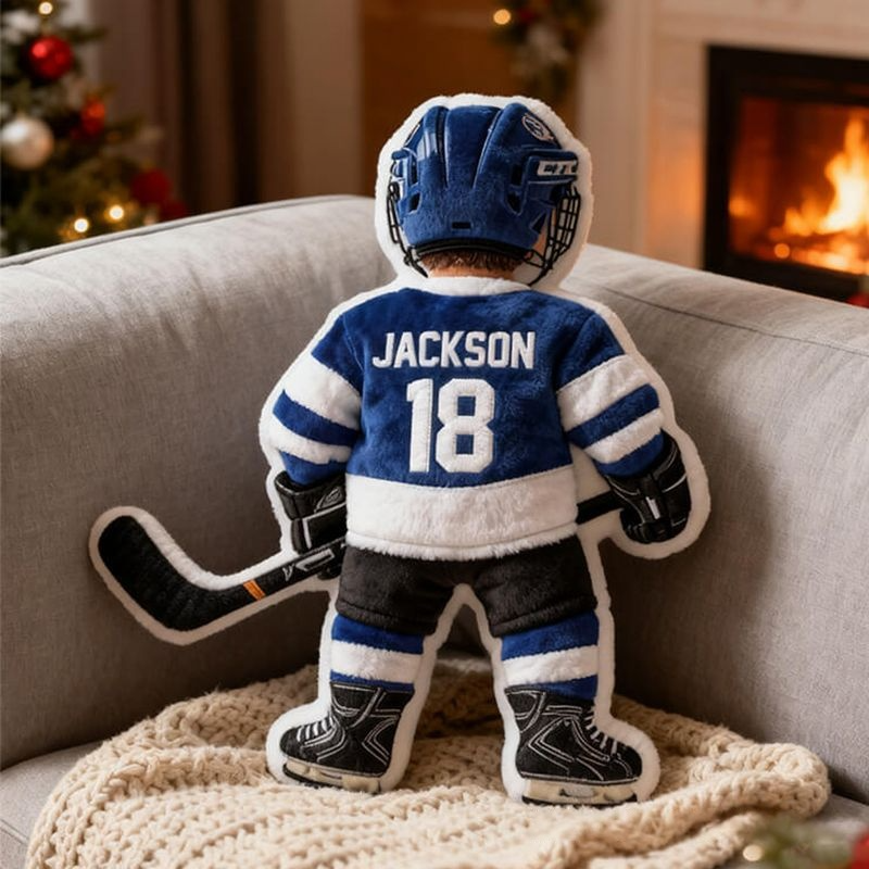 This Ice hockey player pillow is a perfect blend of sporty design and cozy comfort. Featuring a detailed hockey uniform, complete with a customizable name and jersey number, it’s ideal for young hockey players, fans, or anyone who loves the sport. A unique and personal addition to any room!