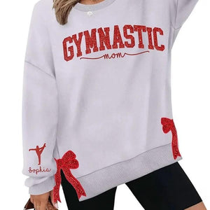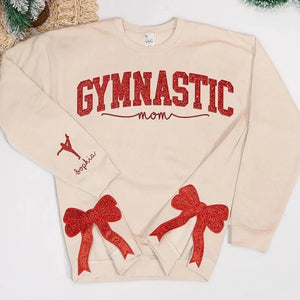Personalized Gymnastic Mom Side Bow Glitter Embroidery Sweatshirt Gymnastic Mom Gifts