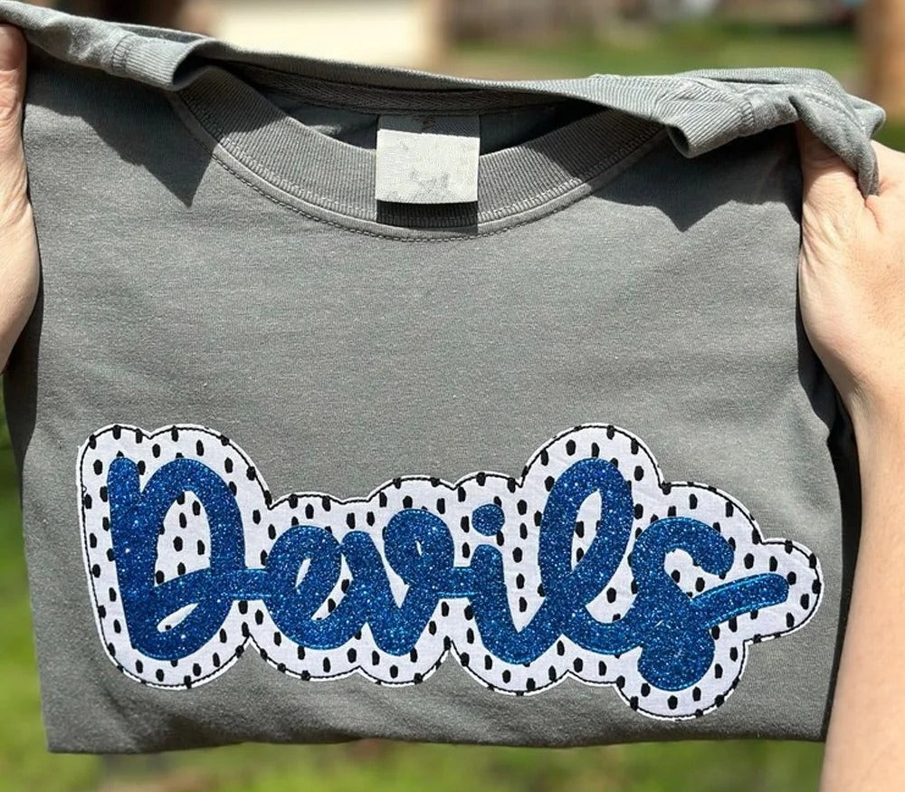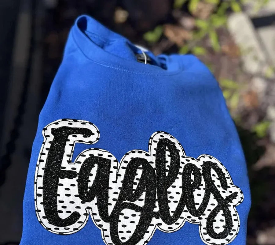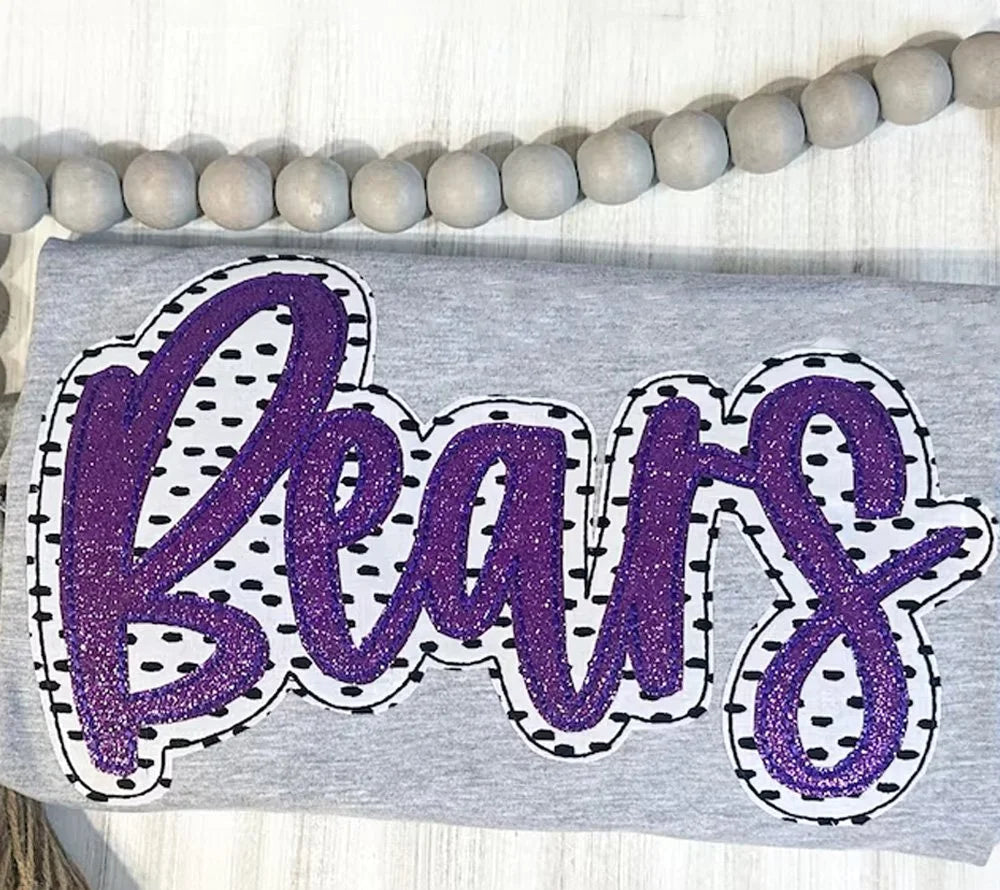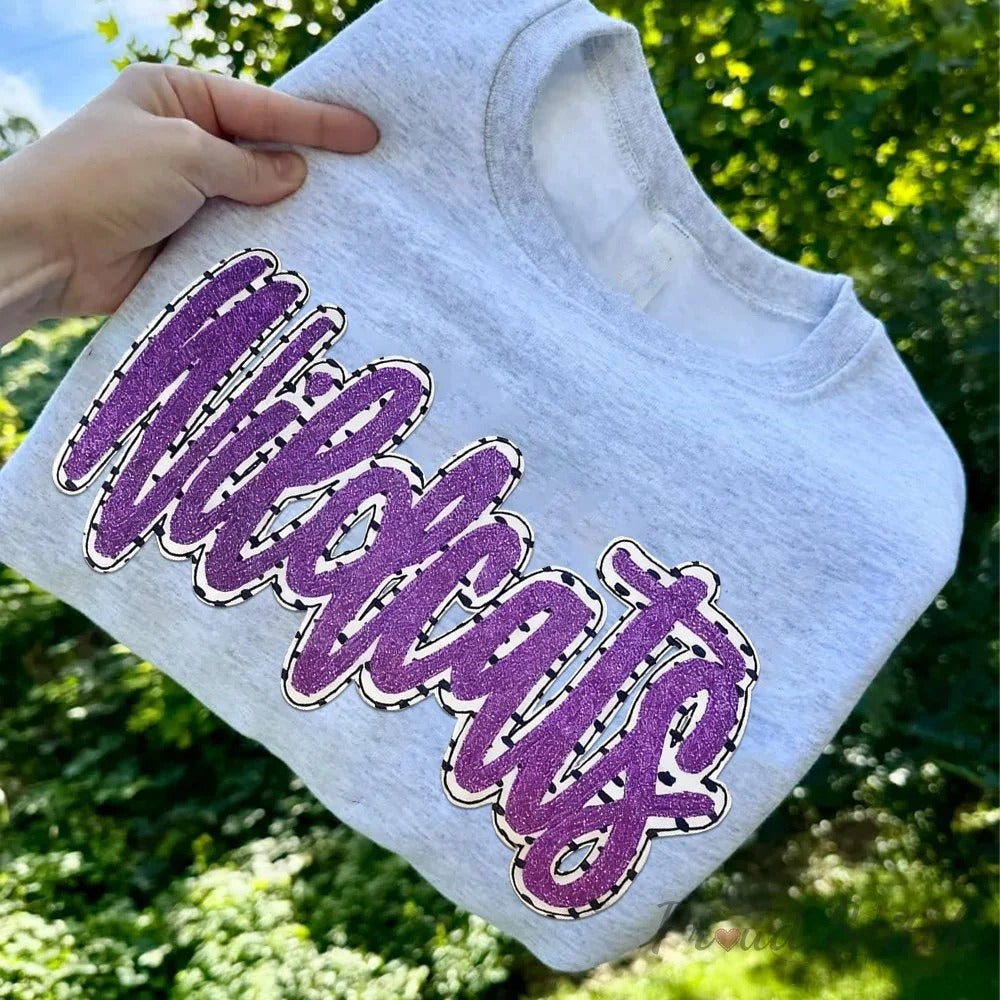 Personalized School Spirit Applique Sweatshirt Glittered Applique Embroidery Team Name Apparel