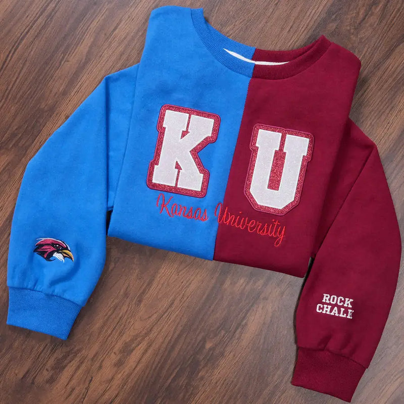 Home Custom College Team Two Tone Embroidered Sweatshirt