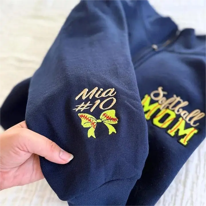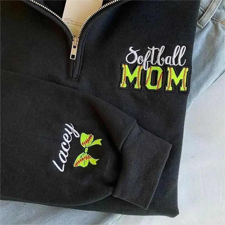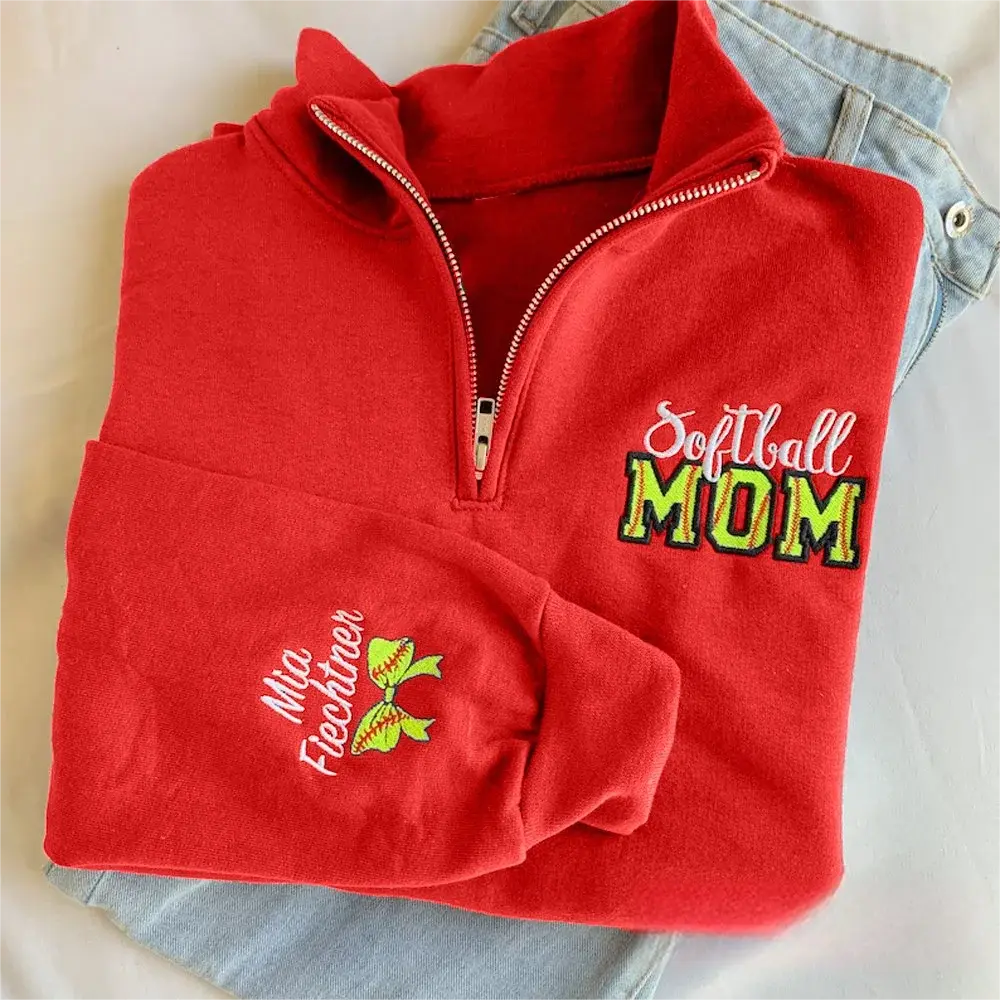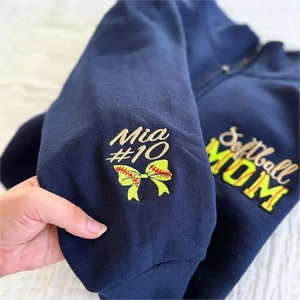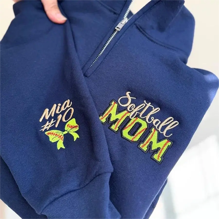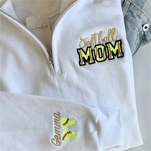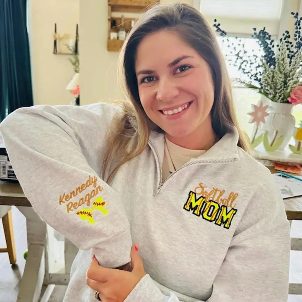 Personalized Softball Mom Embroidery Sweatshirt with Kid Name on Sleeve