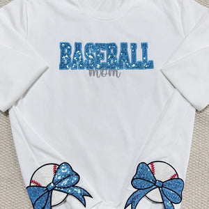 Home Personalized Sports Mom Sweatshirt Sequin Embroidery with Side Bows