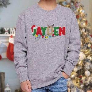 Personalized Trendy Christmas Sweatshirt with Santa Side Bow Embroidered Christmas Mama Sweatshirt