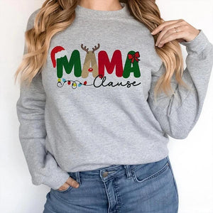 Home Personalized Trendy Christmas Sweatshirt with Santa Side Bow Embroidered Christmas Mama Sweatshirt