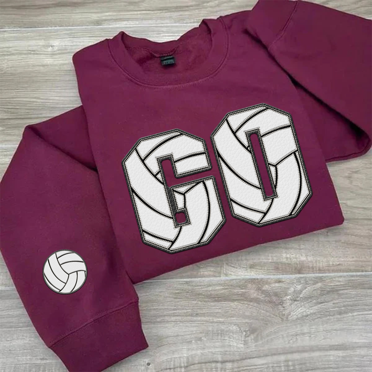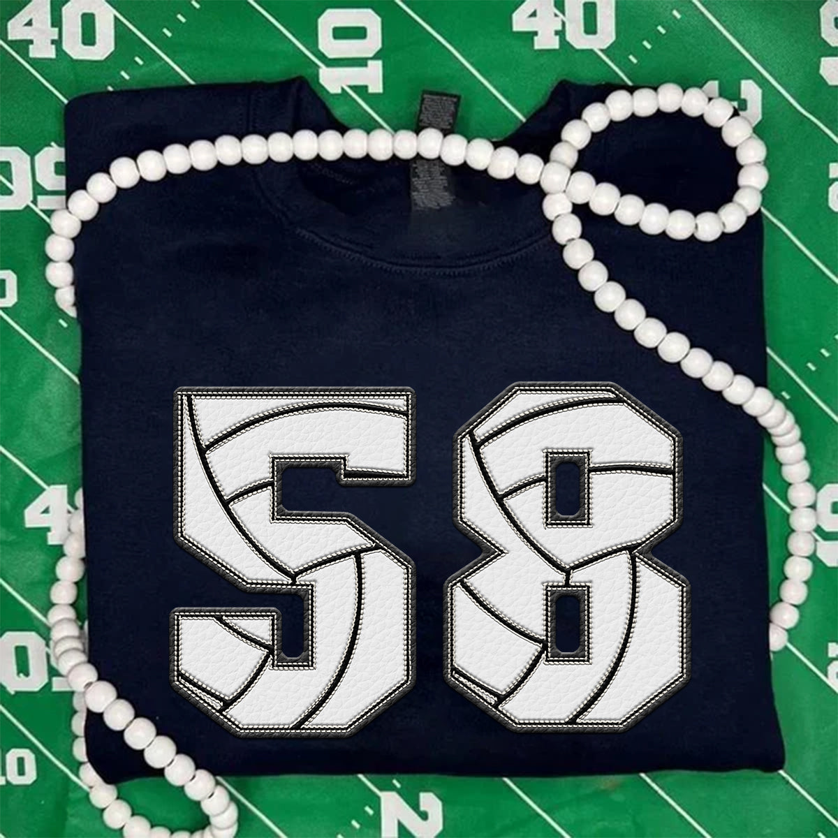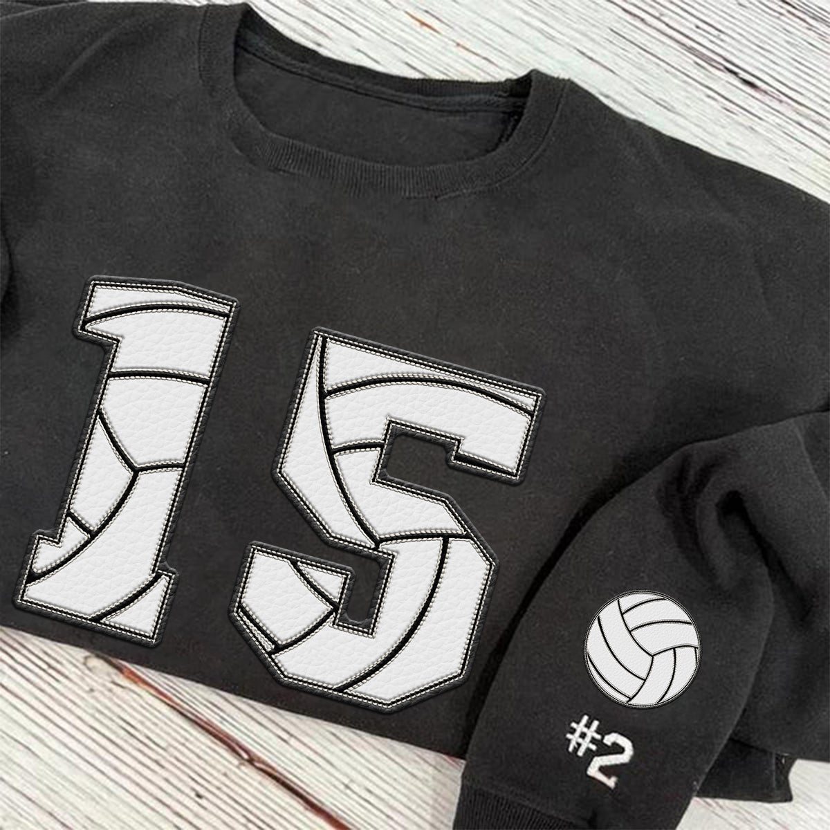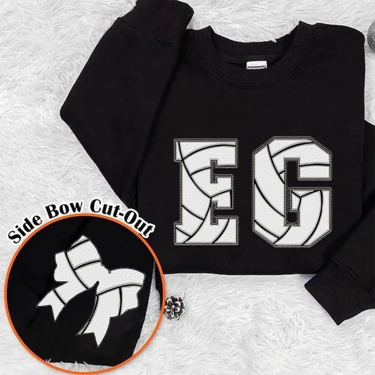 Personalized Volleyball-Themed Embroidered Side Bow Sweatshirt with Custom Number/Letter