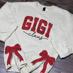 Custom Gigi Side Bow Applique Christmas Sweatshirt Embroidered For Grandma And Kids