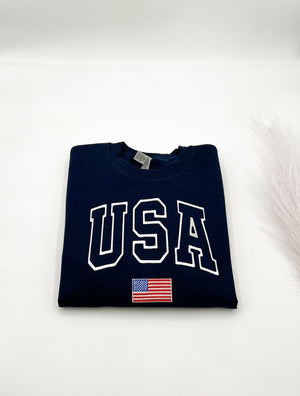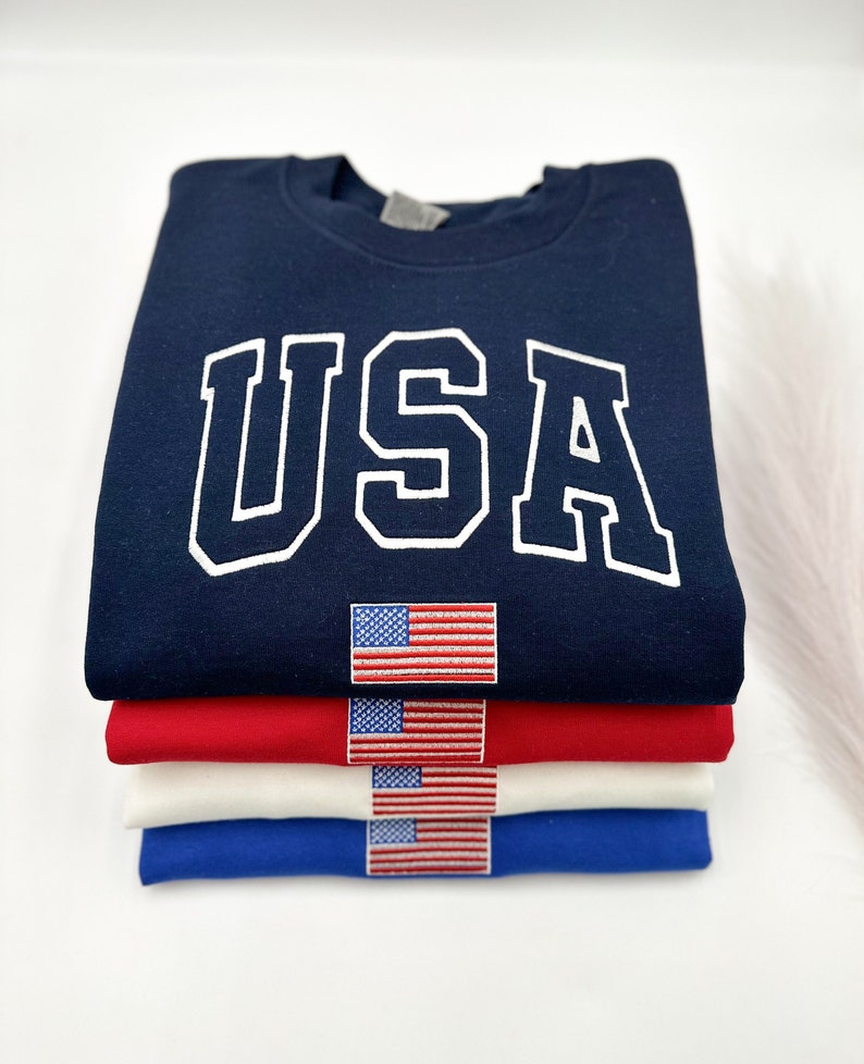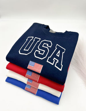 USA Flag Independence Day Patriotic Embroidered Sweatshirt