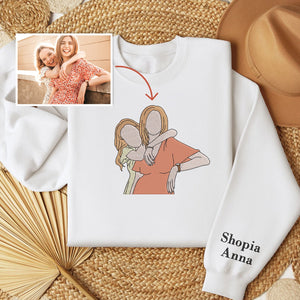 Best friends Embroidered Sweatshirt | Custom Portrait best friend | Personalized embroidered sweatshirt | Gift For Best Friends