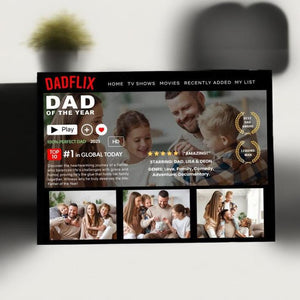 Celebrate Grandpa with this personalized Dadflix-style photo frame, turning his favorite family memories into a movie-worthy tribute. A fun and meaningful Father’s Day gift he’ll proudly display.