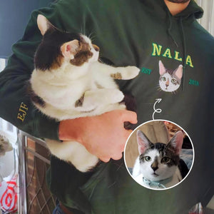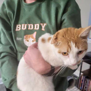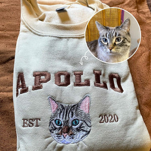 Custom Embroidered Varsity Cat Face Sweatshirt from Photo, Personalized Gift for Cat Lover