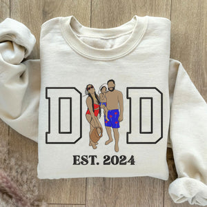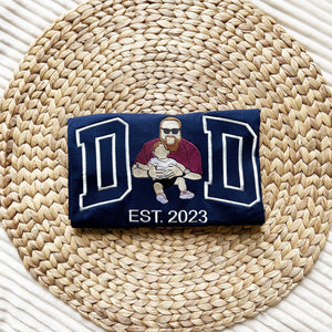Custom Fathers Day Embroidered Photo Portrait Hoodie, Personalized Gift for Dad