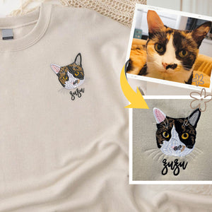 Personalized Cat Face from photo Embroidered Sweatshirt | Gift For Pet Lover