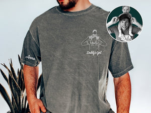 Custom Blue Embroidered Dad T-Shirt,Personalized Photo Unique Gift , Father's Day Gift