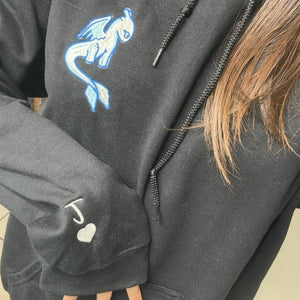 Hem Custom Embroidered Matching Couple Hoodies For Valentine ideas,Custom Cartoon Toothless x Light Fury Couples Embroidered Hoodie