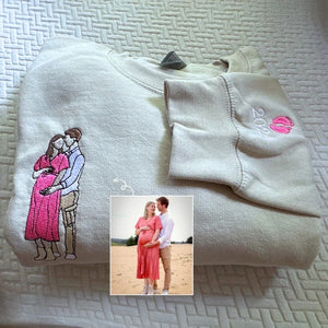 Custom Embroidered Photo Portrait T-shirt Hoodie For Mom - Unique Mother's Day Gift