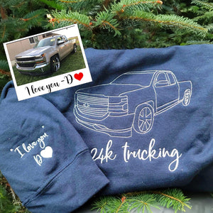 Hem Custom Father's Day Embroidered Car Outline Photo Sweatshirt | For Car Lover